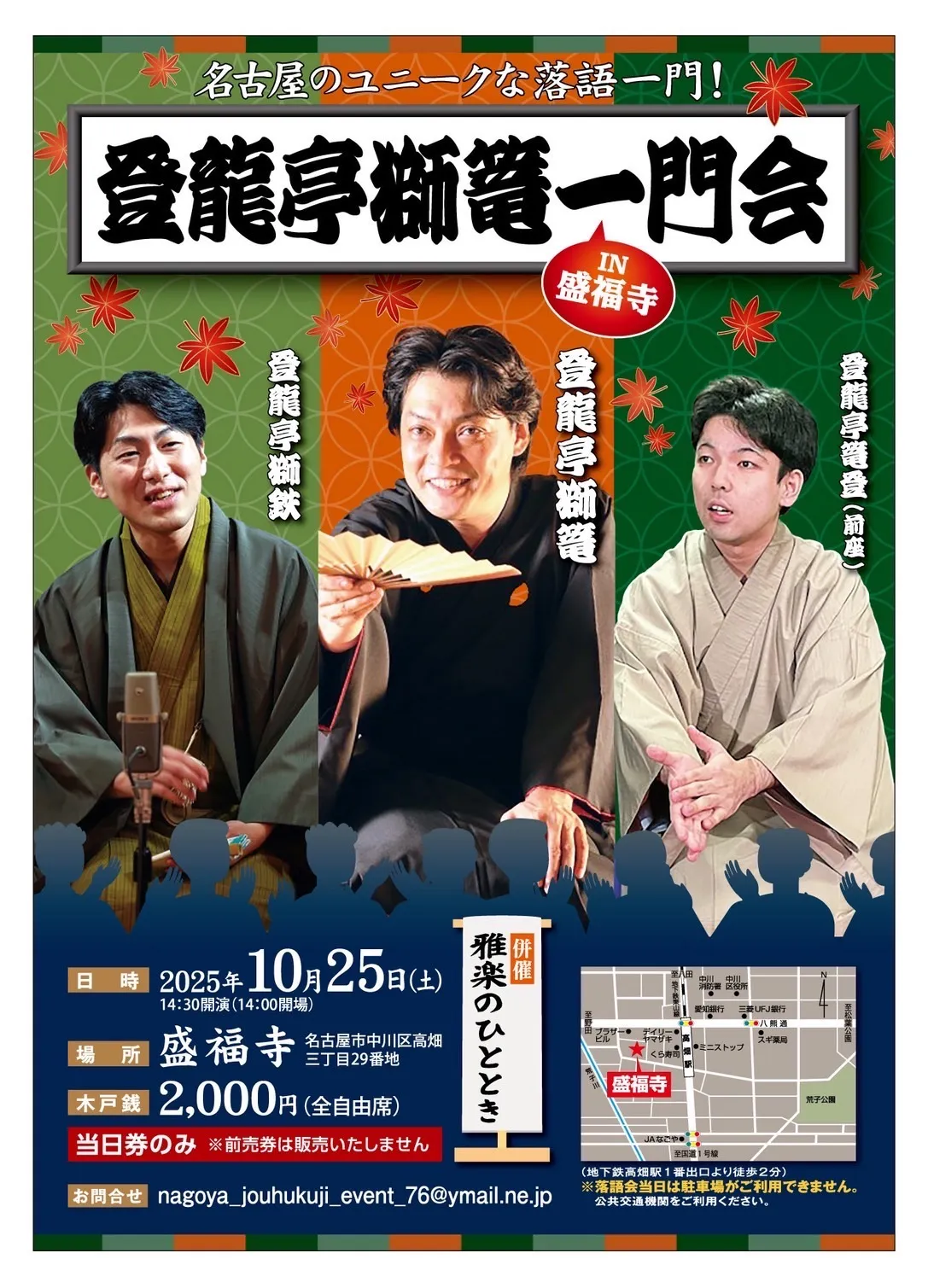 登龍亭獅篭一門会の落語が開催されます。